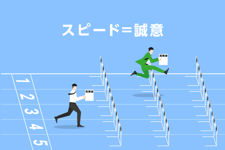 ここがポイント:レスポンスの速さがもたらす「付加価値」 多くの顧客は、一番最初に見積書を提出した会社を比較の基準(ベンチマーク)に設定します。 |