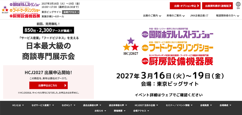 出展:HCJ 2027 – 国際ホテル・レストラン・ショー/フード・ケータリングショー/厨房設備機器展